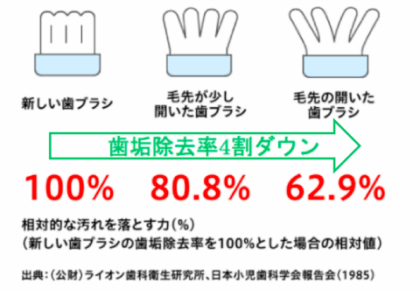 効率よくプラークを落とすためには劣化しすぎないタイミングでの歯ブラシの交換をおすすめしています。